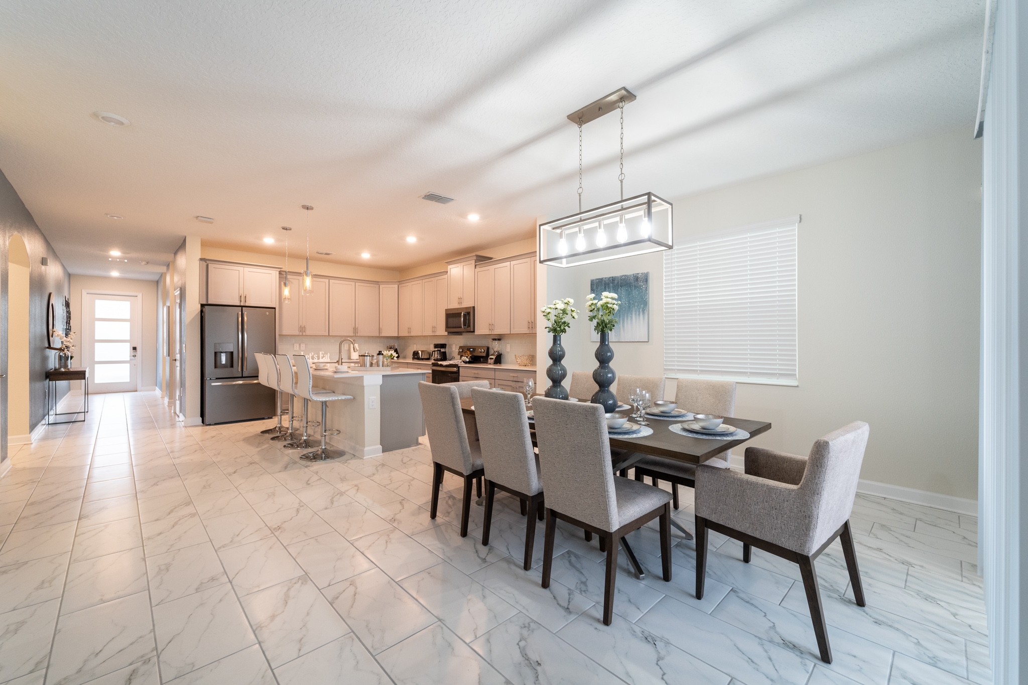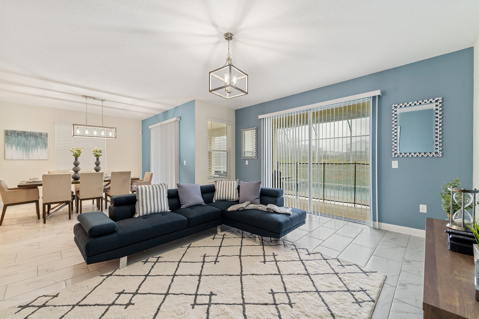 Esta encantadora, moderna y acogedora casa de seis dormitorios y cinco baños con una capacidad máxima de 15 huéspedes, cuenta con una decoración flamante y temática que te dejará una impresión duradera, recuerdos inolvidables y unos días de descanso completamente placenteros. Mahalo Orlando se encuentra equipada con todo el confort necesario para que su estadía sea lo más placentera posible rodeado de familiares y amigos. Ofrecemos amplios espacios llenos de todas las comodidades, donde el disfrute y la calma serán los catalizadores. Se encuentra localizado en la bella urbanización de Champions Gate rodeado de increíbles campos de Golf donde podrás disfrutar de las comodidades que ofrece el Club House Oasis.