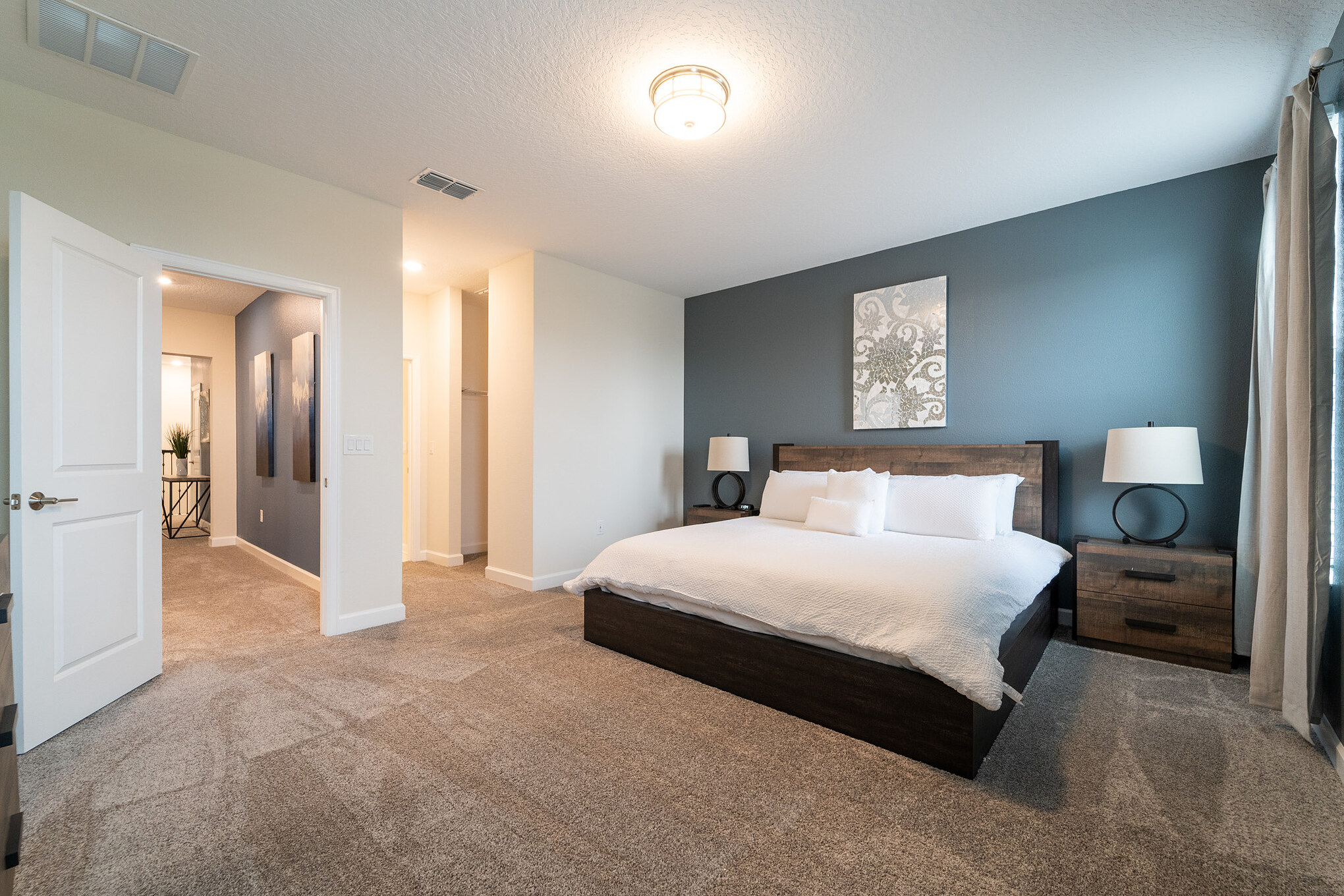 This charming, modern and cozy six-bedrooms/five-bathrooms home with a capacity for 15 guests it is brand new themed decoration that will leave you a lasting impression, unforgettable memories and some completely pleasant days of rest. Mahalo Orlando is equipped with all the necessary comfort to make your stay as pleasant as possible surrounded by family and friends. We offer spacious environments, full of comforts, where you will relax and enjoy the calm. It is Located in the beautiful Champions Gate, surrounded by beautiful golf courses, you can also enjoy and relax in our Club House Oasis.